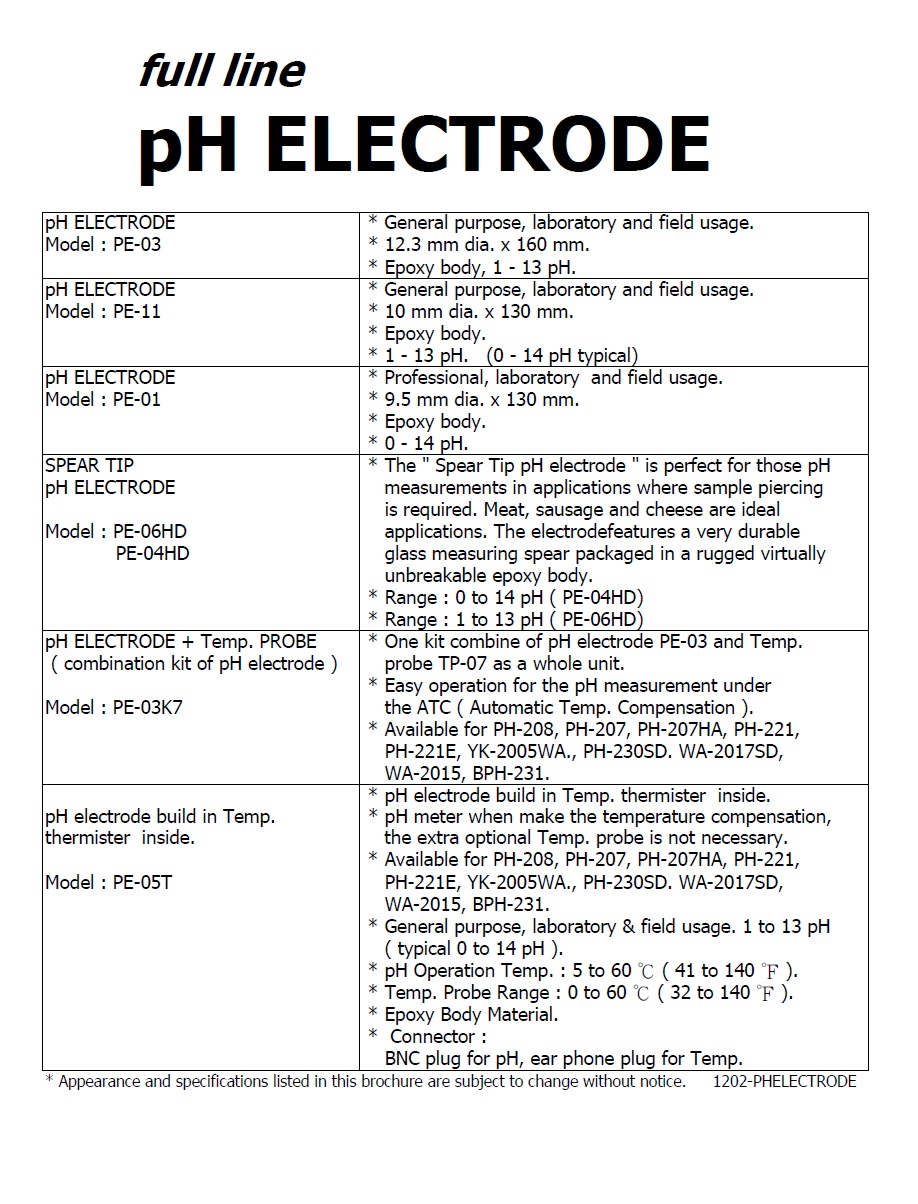 Product Name : | PH ELECTRODE - PE-01 酸鹼度電極棒 |