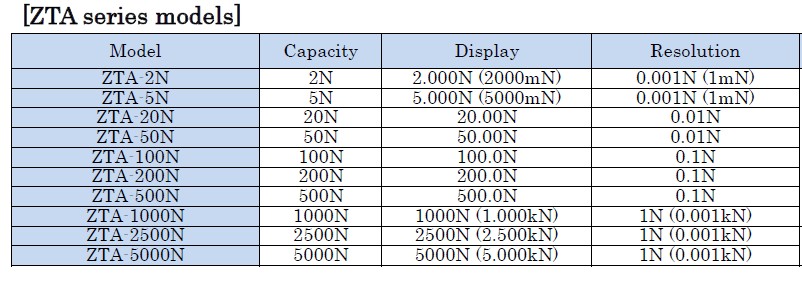 拥有与ZTA相同的性能及功能,最大可进行5000N(500kgf)的测定。
