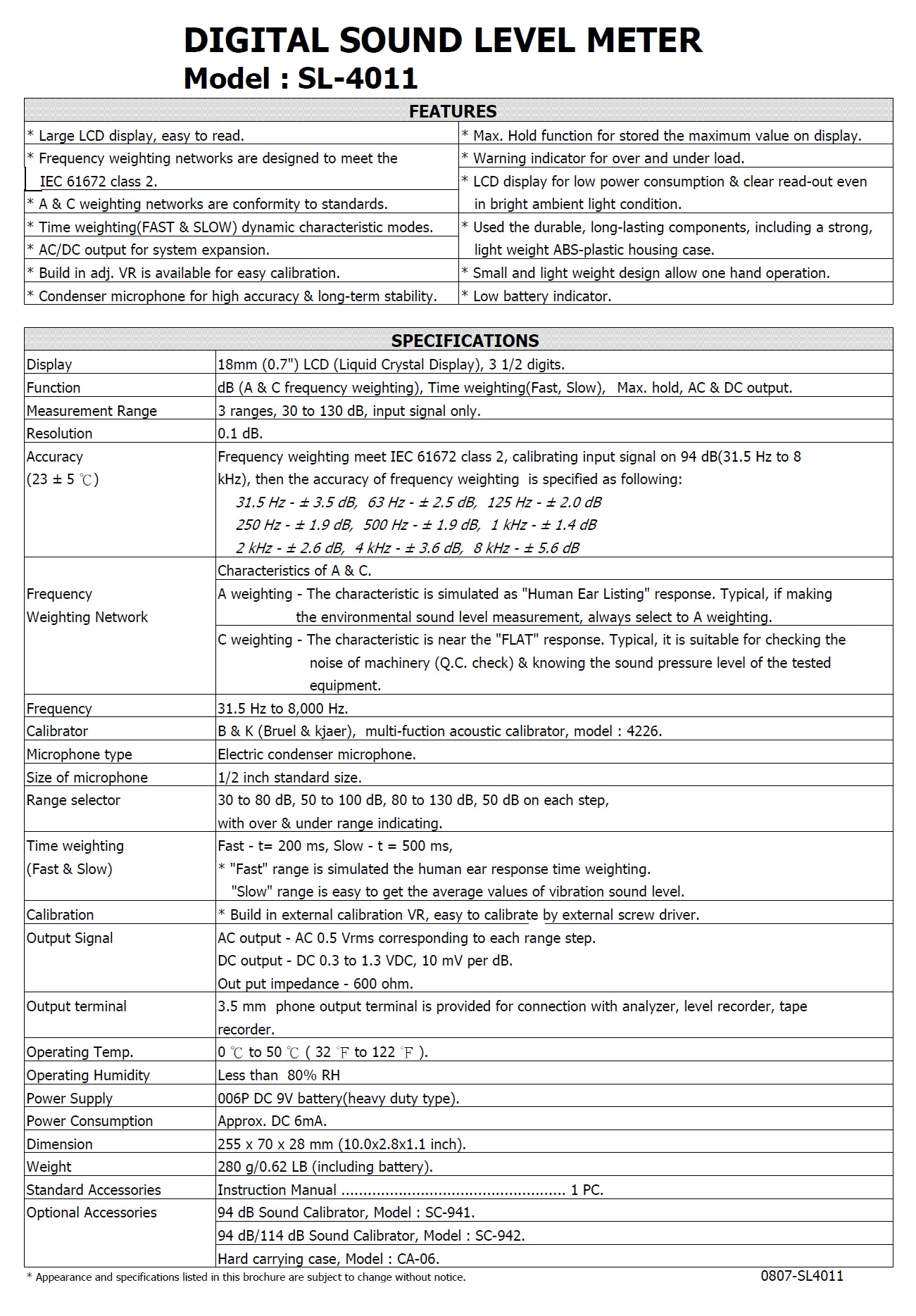 Product Name : | SOUND LEVEL METER - SL-4011 噪音計 |